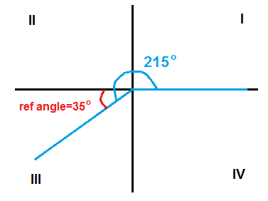 We see that the QIII angle with reference 35° has actual measure 215°.